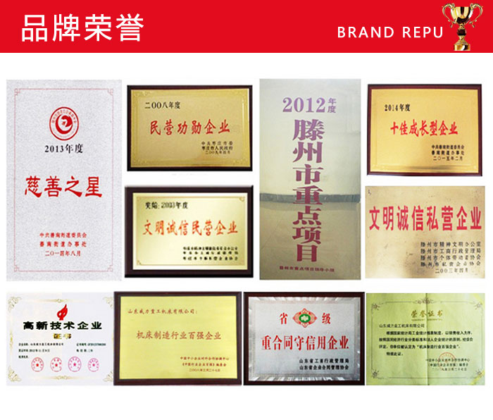 山東威力重工機(jī)床有限公司歷經(jīng)數(shù)十年年的改革與發(fā)展,威力重工取得了不計(jì)其數(shù)的榮譽(yù),包括政府組織機(jī)構(gòu)評(píng)選頒發(fā)的各類證書,媒體和市場研究機(jī)構(gòu)的獎(jiǎng)項(xiàng),公眾通過正式和非正式渠道對(duì)企業(yè)的贊許等等。這些榮譽(yù)是社會(huì)和公眾對(duì)山東威力重工機(jī)床有限公司的獎(jiǎng)勵(lì),是廣大消費(fèi)者對(duì)威力重工產(chǎn)品的認(rèn)可,是山東威力重工優(yōu)良口碑的見證。