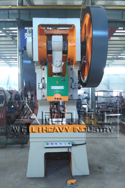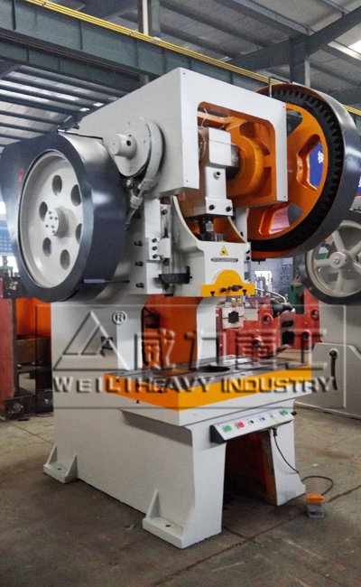 開式固定臺(tái)沖床(壓力機(jī))為J21系列沖床。J21系列經(jīng)濟(jì)型開式固定臺(tái)壓力機(jī)是屬于薄板沖壓的通用壓力機(jī),適用于各種冷沖壓工藝,如剪切、沖孔、落料、彎曲和淺拉伸工作。其結(jié)構(gòu)特點(diǎn)如下: ?曲軸橫向放置,齒輪為外置敞開式,維修方便;?采用組合式剛性連鎖干式氣動(dòng)摩擦離合器——制動(dòng)器,傳遞扭矩大,轉(zhuǎn)動(dòng)慣量小,安裝、維修方便。?滑塊為一鑄造箱形結(jié)構(gòu),滑塊內(nèi)安裝壓塌式過載保護(hù)裝置,保護(hù)動(dòng)作靈敏可靠,滑塊超載后,保險(xiǎn)器壓塌破壞,從而保護(hù)壓力機(jī)的主要零部件和模具不受損壞。![]()