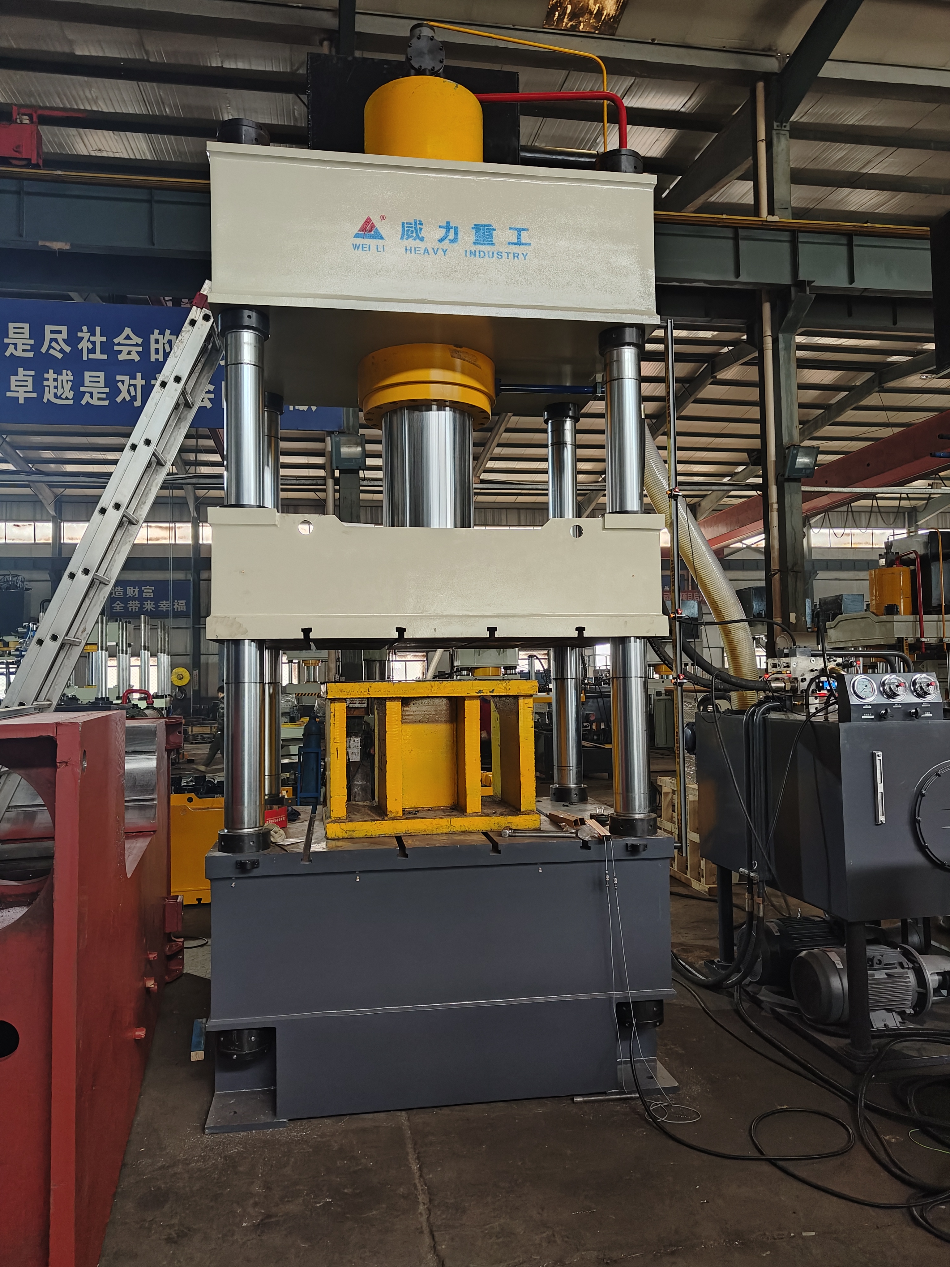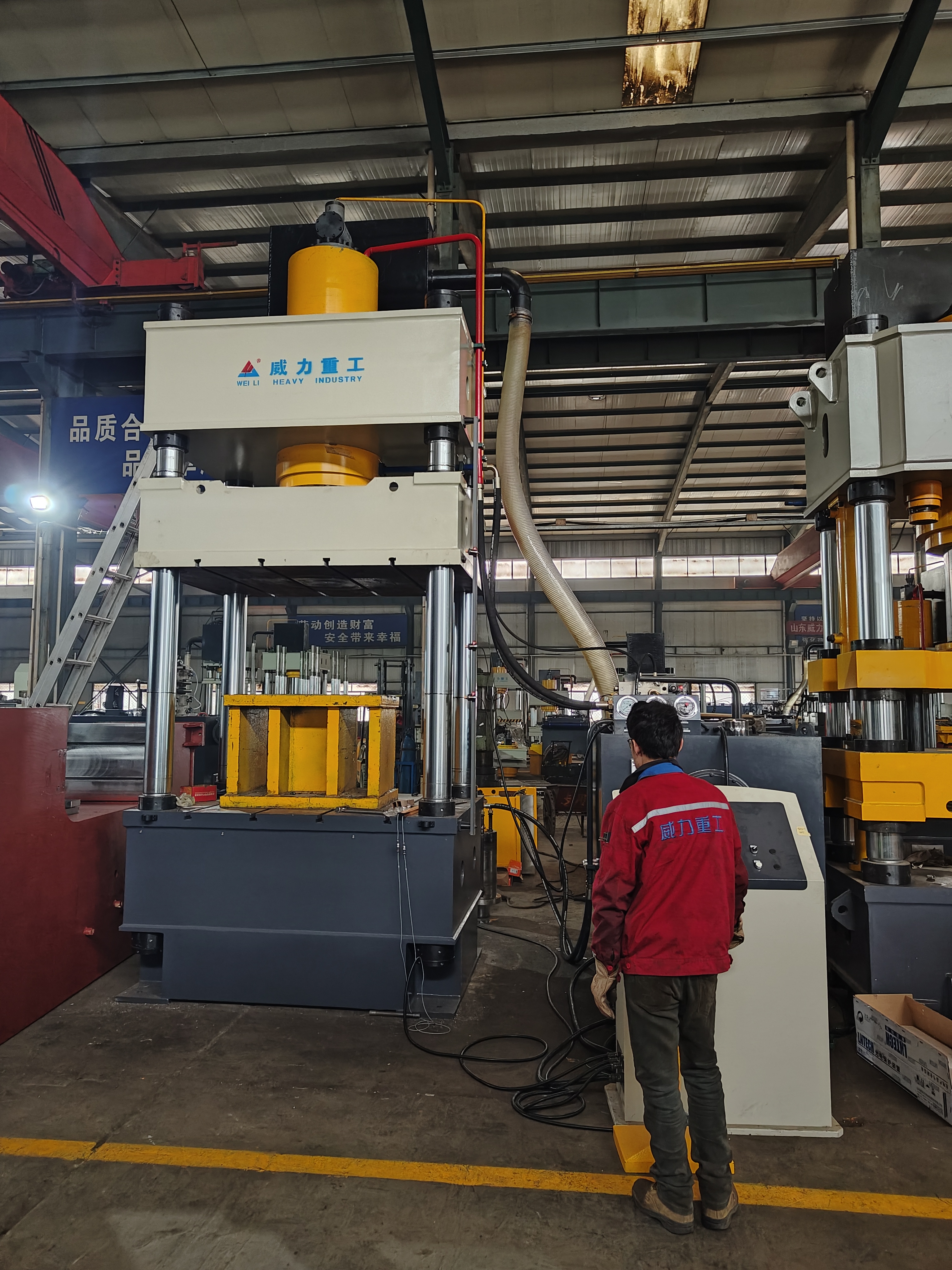 【產品描述】:500噸三梁四柱常規液壓機 是一種利用液體壓力進行工作的機械裝置,廣泛應用于各種工業領域。而500噸三梁四柱常規液壓機則是一種大型的液壓機,通常用于重型工業和制造業中的各種壓制和成型工藝。 該液壓機的主要結構包括三個主梁和四個柱子,以及一些其他重要的部件,如油缸、工作臺、壓力控制器等。這些部件協同工作,使液壓機能夠實現各種不同的壓制和成型操作。