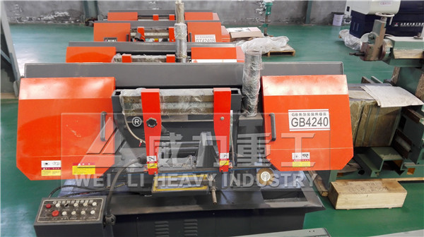 【產品描述】:GB4240金屬帶鋸床 是集機、電、液為一體的全自動帶鋸床,是鋸切較大直徑的黑色金屬和有色金屬等各種型材的設備, 具有高效、節能、高精度等特點。其結構合理,造型美觀、操作方便,是大中型企業批量最理想的帶鋸床。 主要特點 : 切削速度液壓控制,無級調速; 導向塊結構科學合理,延長鋸條的使用壽命; 雙立柱結構,操作平穩; 鋸切穩定,精度高; 工作夾緊采用液壓